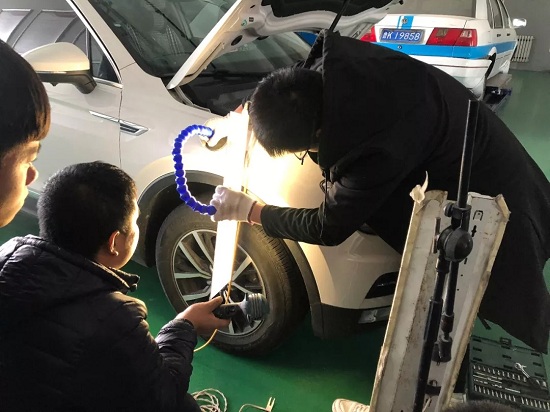 本次授课前,汽车工程部通过学校教师群发布了征集需要凹陷修复的车辆的通知。早上8点,各位老师将需要维修的车辆早早地开到了励行楼——汽车实训中心的西门,汽车工程部杨广涛老师负责了维修车辆的接收工作。