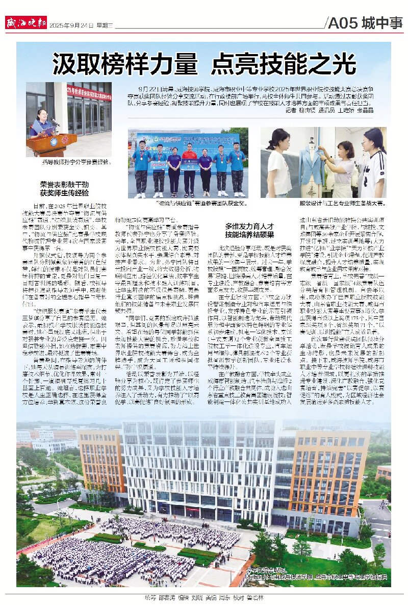 【威海晚报】汲取榜样力量 点亮技能之光 时间:2025-09-23 来源:宣传统战办公室 发布人: 浏览量: