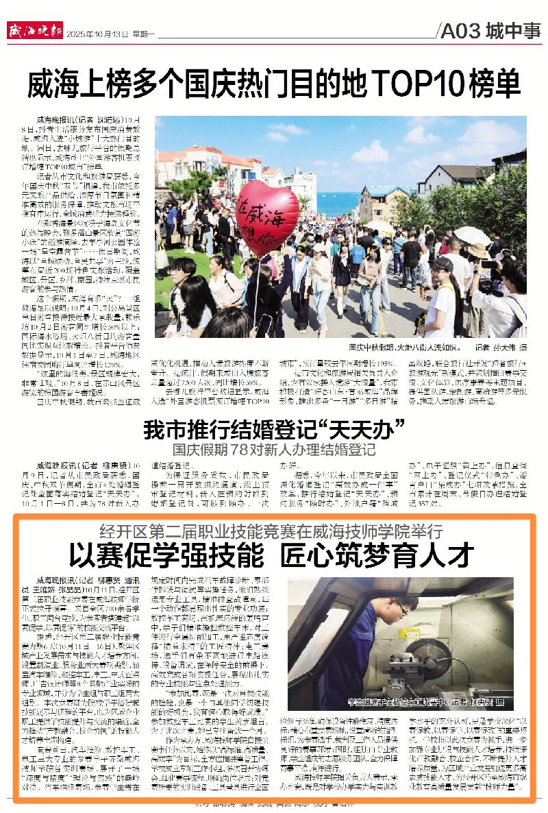 【威海晚报】以赛促学强技能 匠心筑梦育人才 时间:2025-10-13 来源:宣传统战办公室 发布人: 浏览量: