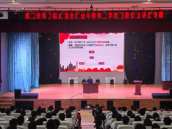学校开展消防安全专题讲座时间:2025-11-14 来源:安全管理办公室 发布人: 浏览量:为进一步强化师生消防安全意识,提升火灾应急处置能力,近日,学校特邀威海市经济技术开发区消防救援人员到校开展消防安全专题讲座,全校师生代表参与学习,共同筑牢校园安全“防火墙”。