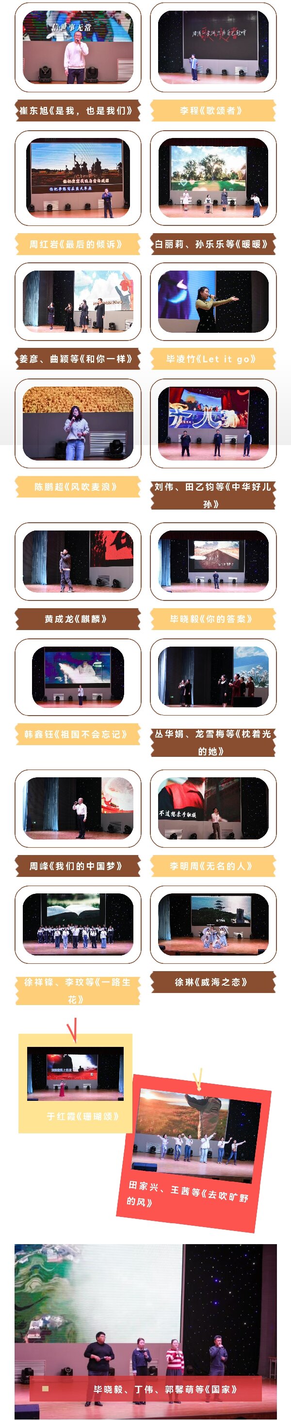 舞台上,选手们各展所长。崔东旭、周红岩、李程等十二位选手分别演绎《是我,也是我们》《最后的倾诉》《歌颂者》等风格多元的独唱曲目,让人不禁沉醉其中;《暖暖》《和你一样》《中华好儿孙》等七首合唱曲目亮点纷呈,富有创意的编排展现出团队的默契配合。教职工们用各具特色的声线演绎出多样情怀,或深情婉转、或激情澎湃,他们在音乐中抒发教育情怀,在竞技中凝聚团队力量,温馨与豪迈交织的旋律将这份热忱传递到每一位观众心底。活动中,还穿插了击鼓传花的互动环节,鼓点起落间鲜花在观众手中传递,参与趣味挑战的同时还能获得惊喜小礼品,现场师生的参与热情得到极大激发,欢呼声与掌声不断。