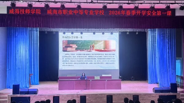安全第一课 护航成长路时间:2026-03-15 来源:安全管理办公室 发布人: 浏览量:春启新程,安全先行。新学期伊始,威海技师学院、威海市职业中等专业学校2026年春季开学安全第一课在报告厅开讲,威海市职业中等专业学校校长朱文娟授课,围绕消防安全、饮食健康、电信网络诈骗防范、交通安全、防溺水、传染病防控、抵制校园欺凌、实训操作安全八大核心领域,为全体学生带来一堂干货满满、实用性极强的安全必修课。