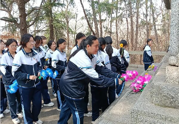 威海职专餐旅服务部开展“清明祭英烈·青春铸忠魂”主题教育暨志愿实践活动时间:2026-03-28 来源:餐旅服务部 发布人: 浏览量:清明将至,哀思寄情。为深切缅怀革命先烈,传承红色基因,深化党建带团建育人实效,3月26日上午,学校餐旅服务部组织党员教师、团员学生代表40余人,赴文登天福山起义纪念馆开展“清明祭英烈·青春铸忠魂”主题教育暨志愿实践活动,让师生在红色研学中悟初心,在志愿服务中践使命。