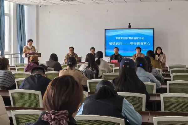 职教实验部第一期“青教培英”沙龙圆满举行时间:2026-04-18 来源:职教实验部 发布人: 浏览量:为深入贯彻职业教育教师能力提升相关文件精神,破解青年教师成长痛点,搭建系统化专业成长平台,职教实验部正式启动“青教培英”沙龙系列活动。近日,第一期活动在热烈而庄重的氛围中拉开帷幕。本次活动以“师德践行——铸魂育人,坚守教育初心”为主题,聚焦青年教师师德修养与专业成长,通过专家解读、榜样分享及闭卷考试等环节,为青年教师提供了学习交流、共同提升的平台。