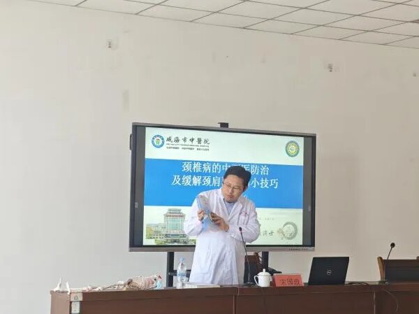 活动特别邀请到威海市中医院治未病科主任宋国政,围绕“颈椎的中西医防治及缓解肩颈不适的小技巧”这一主题,为在场教师和学生带来了一场深入浅出的健康讲座。讲座特别结合教师的职业特点,详细讲解了颈椎病的常见成因、典型症状及其可能引发的连锁反应,帮助大家“看清”日常肩颈不适背后的健康隐患,以及解决肩颈问题的小技巧。在随后的互动环节中,大家踊跃提问,专家耐心细致地逐一解答,现场交流氛围浓厚。